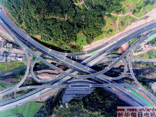 ▲俯瞰雅康高速对岩枢纽互通工程(2017年12月30日摄)。