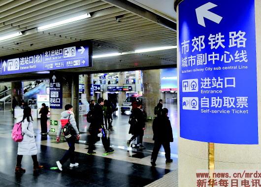 ▲2017年12月31日在北京西站拍摄的市郊铁路城市副中心线相关指示标识。
