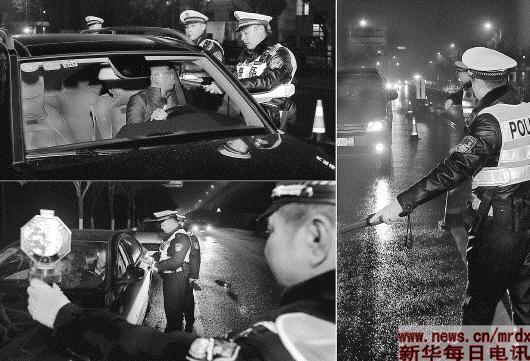 ▲左上图:上海市公安局奉贤分局交警支队民警苏栋在对司机进行酒精测试;左下图:上海市公安局闵行分局交警支队民警在对司机进行酒精测试(2017年12月31日摄);右图:上海市公安局黄浦分局交警支队民警在指挥车辆停车接受检查(2017年12月30日摄)。元旦假日期间,上海警方在全市重点路口、餐饮娱乐场所周边道路加强盘查,严防因酒后驾车等原因引起的交通事故,确保城市交通安全有序。