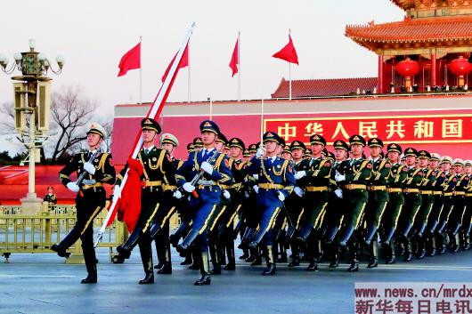▲1月1日,北京天安门广场举行隆重的升国旗仪式,这是由人民解放军担负国旗护卫任务后,首次举行的升旗仪式。