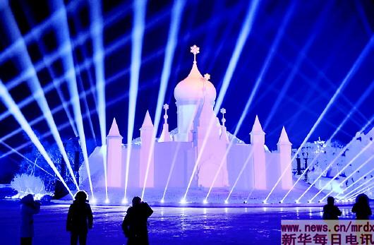 运用现代声光电和数字技术的大型3D实景幻影雪秀《雪舞间》,近日在哈尔滨太阳岛雪博会园区上演,为雪博会增添了色彩。