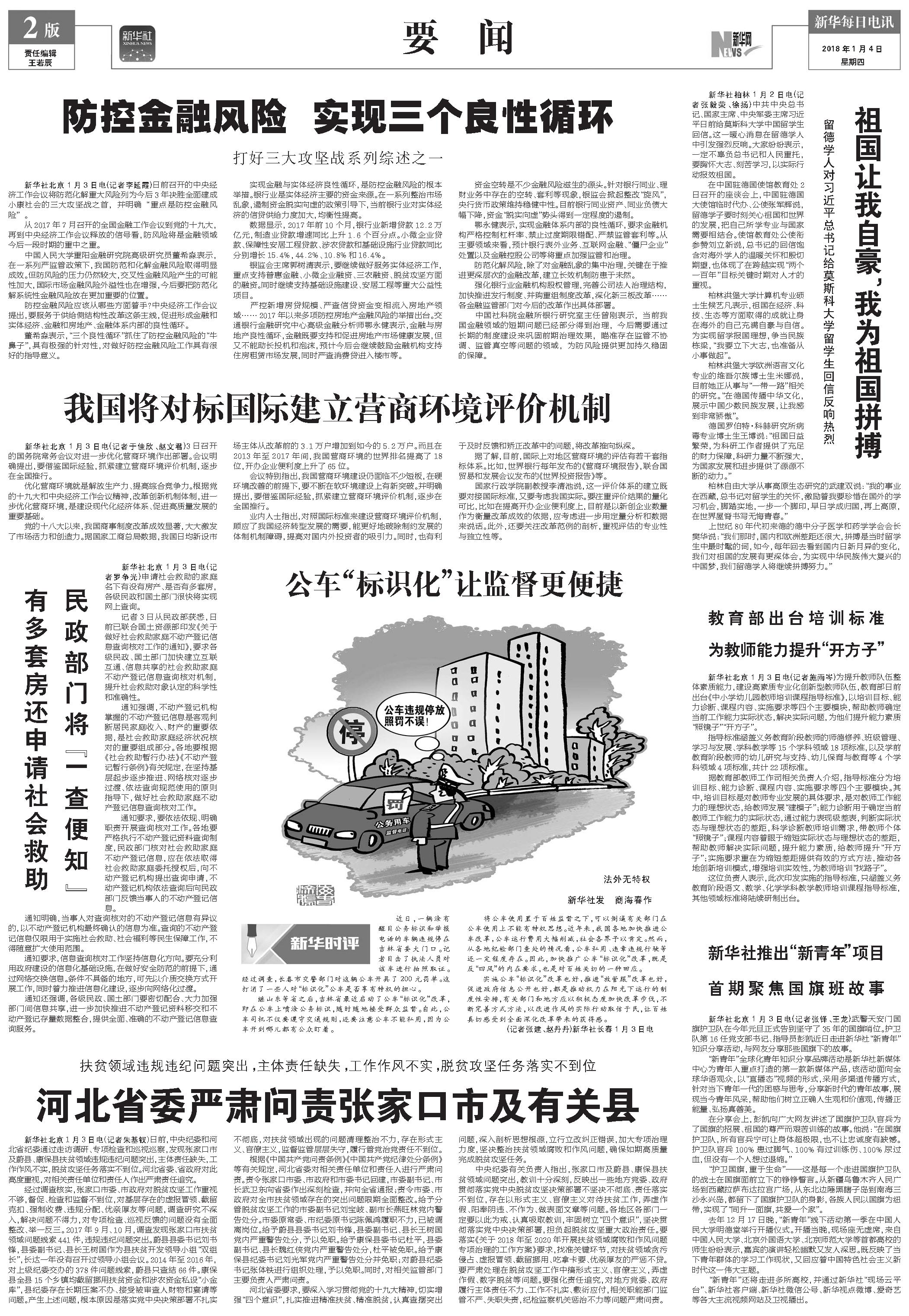 防控金融风险 实现三个良性循环 (2018年01月04日) |