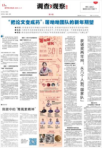 “把论文变成药”:屠呦呦团队的新年期望 |
