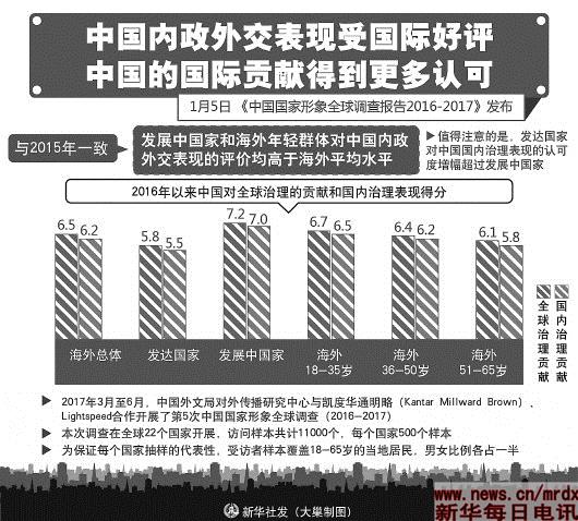 | 《中国国家形象全球调查报告2016—2017》发布报告还显示:年轻群体评价更高