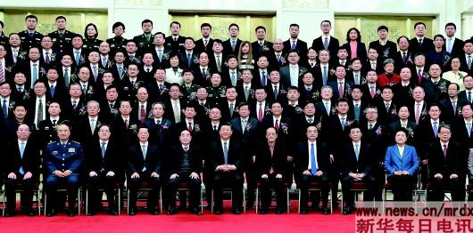 ▲1月8日,国家科学技术奖励大会在北京人民大会堂隆重举行。党和国家领导人习近平、李克强、张高丽、王沪宁出席大会并为获奖代表颁奖。会前,习近平等党和国家领导人会见获奖代表并同大家合影留念。新华社记者谢环驰摄