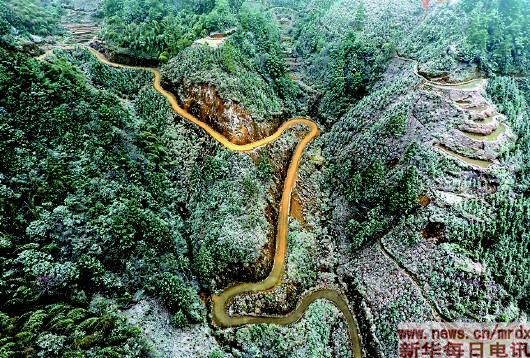 受强冷空气影响,广西融水苗族自治县高寒山区出现强降温天气,冰雪覆盖的苗寨格外美丽。