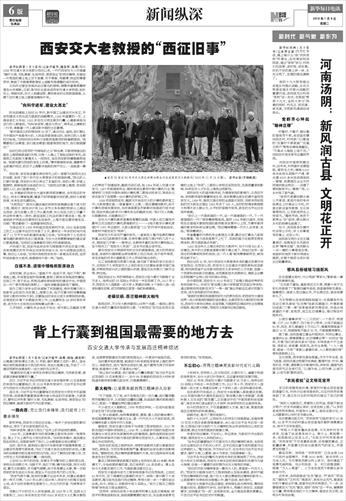 “西迁的历史与精神是老一辈交大人的,更是新一代交大人的。”西安交大能源与动力工程学院硕士生陈冰清说,新时代赋予西迁精神新的内涵,每个交大人都应勇做西迁精神的新传人,让家国情怀与使命担当根植心中,融于血液,指引前行。