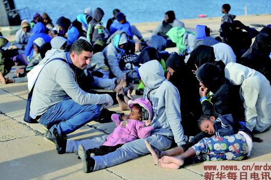 1月7日,在利比亚的黎波里一海军基地,获救的非法移民接受救助。利比亚海军7日在西部城市加拉布里以北10多公里处海域救起297名非法移民,并找到两具遇难者遗体。加拉布里位于首都的黎波里以东约50公里,是非法移民从利比亚偷渡的主要出发点之一。
