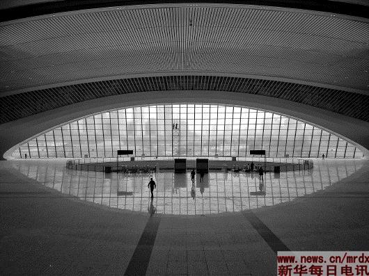 ▲重庆西站候车室内的玻璃窗户与地面倒影形成了一个巨大的“眼睛”(1月8日摄)。经过3年多建设,重庆西站铁路综合交通枢纽一期工程建设竣工,并将于近期交付使用。