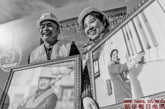 ▲1月9日,建筑工人黄春平(左)和保洁员曾凤在展示自己的“笑脸照”。