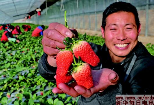 近年来,河北省迁安市把发展设施农业作为建设现代农业的重要抓手,因地制宜大力发展大棚蔬菜、草莓、果树种植等。迁安市设施农业种植面积达23万亩,成为当地农民增收的重要渠道。  新华社记者杨世尧摄