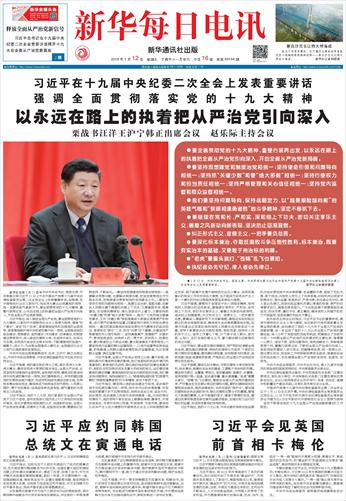 | ( 2018-01-12 ) 稿件来源: 新华每日电讯头版新闻 |