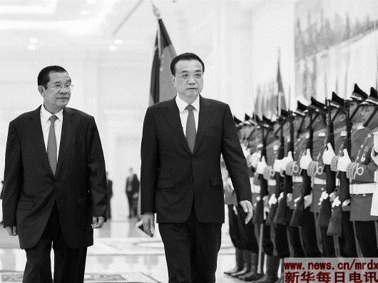 李克强表示,中柬是近邻,传统友谊深厚。中国始终尊重柬埔寨的主权和独立,坚定支持柬埔寨走符合本国国情的发展道路。中方愿以两国建交60周年为契机,继续同柬方密切高层交往,深化各领域务实合作,密切人文等领域的交流,同时为柬埔寨发展经济,尤其是改善民生提供力所能及的帮助,携手打造中柬具有战略意义的命运共同体。