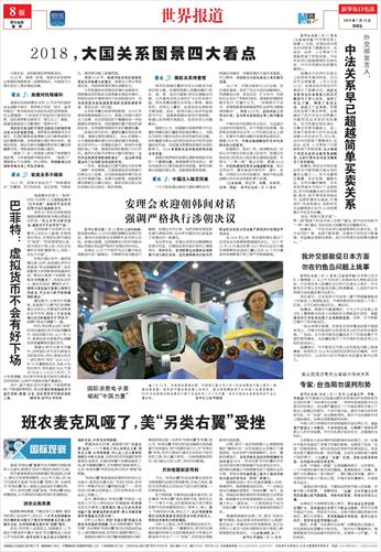 | ( 2018-01-12 ) 稿件来源:新华每日电讯 世界报道 |