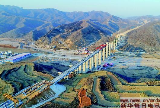 这是太行山高速公路河北沙河三号桥施工现场(1月12日摄)。目前,太行山高速公路河北段正在加紧施工建设。