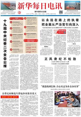 ( 2018-01-14 ) 稿件来源:新华每日电讯 头版新闻