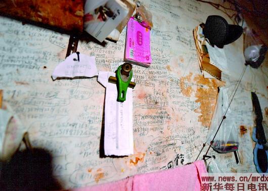 熊庚香家斑驳的墙壁上写满了10多年来患者及家属留下的电话号码。他们希望熊庚香夫妇能来自己家中做客(1月9日摄)。