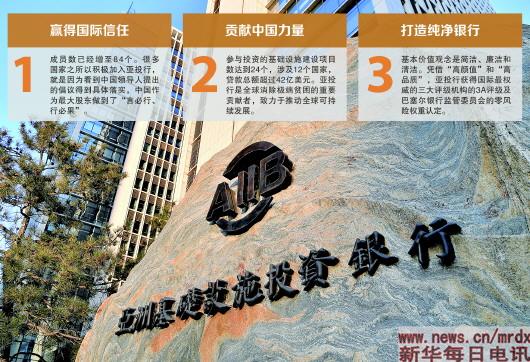 “能够在短短两年时间内树立起那么好的信誉和标准,非常不容易。”复旦大学欧洲问题研究中心主任丁纯说,亚投行成立以来,坚持专业、透明、遵循国际规则,使其获得国际机构的3A评级,受到全球投资者热捧,有助于亚投行更多在国际金融市场上融资,降低融资成本,建设更多基础设施。