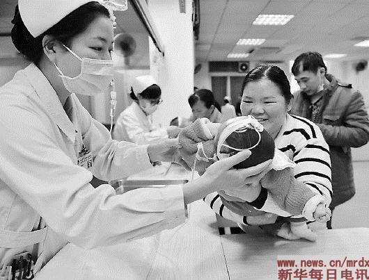 1月16日,福建省妇幼保健院的医务人员在为患儿治疗。 |