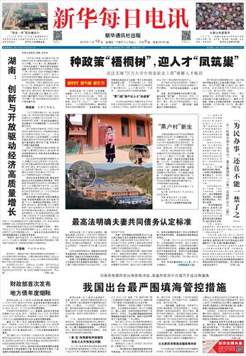 ( 2018-01-18 ) 稿件来源: 新华每日电讯头版新闻