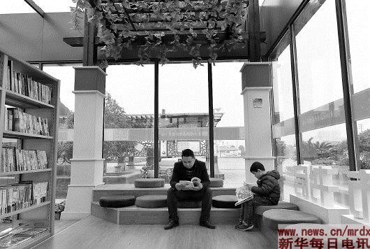 1月17日,在江西省南昌市青山湖区罗家镇文化广场,市民正在24小时自助图书馆内阅读。