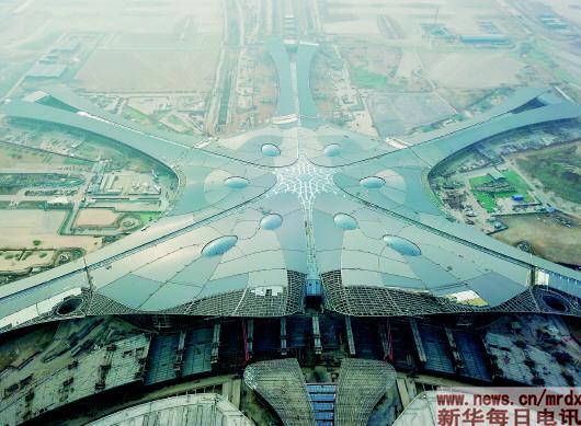 1月18日拍摄的北京新机场航站楼(无人机拍摄)。日前,北京新机场航站楼已实现功能性封顶封围,目前正开展二次结构、幕墙、机电安装等分项工程施工。