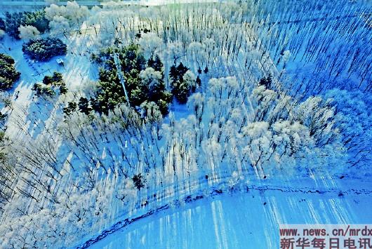 沈阳浑河岸边的雾凇景观(1月18日摄)。1月18日,辽宁省沈阳市出现雾凇景观,玉树琼花,美不胜收。
