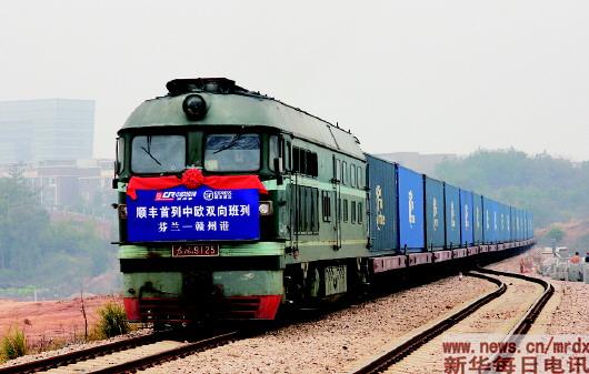 1月14日,“顺丰速运全国首列中欧班列双向对开仪式”在赣州港举行。伴随着汽笛声,“顺丰号”国际班列正式起航。