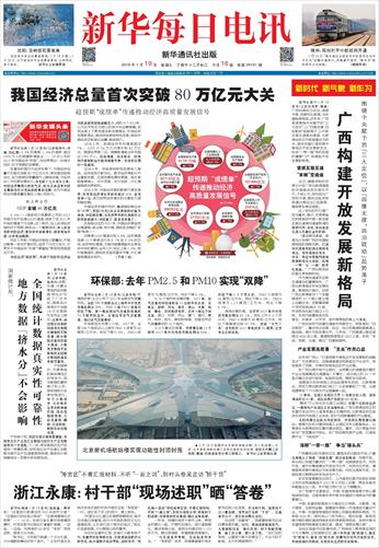 ( 2018-01-19 ) 稿件来源:新华每日电讯 头版新闻