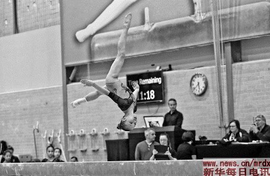 ▲2015年8月8日,由温州当地社会力量与体育系统合作培养的黎琪,在中国和澳大利亚女子体操国际友谊赛的比赛中。
