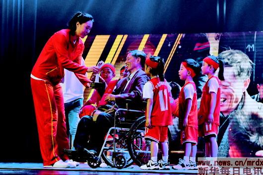 1月19日,“轮椅上的幼篮大家”余绍森上台领奖。