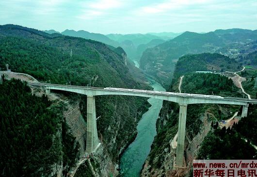 山城重庆到林城贵阳,数百公里路,沟壑纵横、谷深坡陡,以往火车要运行10余个小时才能到达。