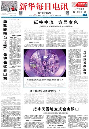 | ( 2018-01-27 ) 稿件来源:新华每日电讯 头版新闻 |