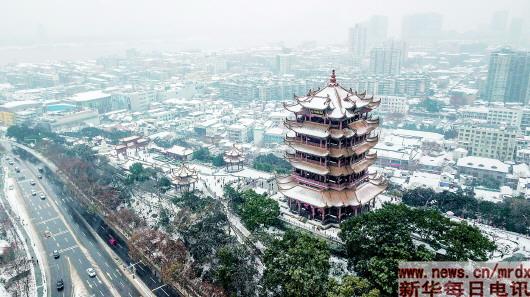 ▲1月27日拍摄的武汉黄鹤楼及周边景色。当日,湖北武汉出现降雪天气,因道路结冰,市内部分路段封闭。武汉三大火车站100多趟列车停运,各大汽车客运站几乎全线停运。新华社记者熊琦摄