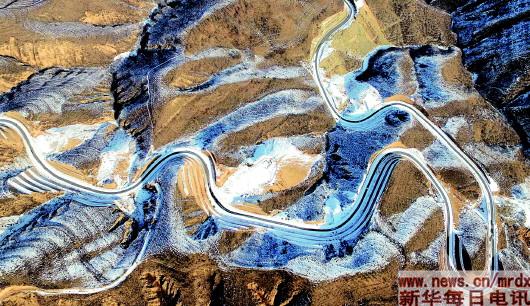 这是航拍的沿黄公路延川辖区(1月17日摄)。