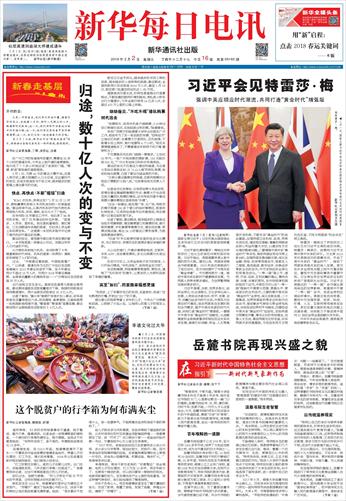 | ( 2018-02-02 ) 稿件来源: 新华每日电讯头版新闻 |