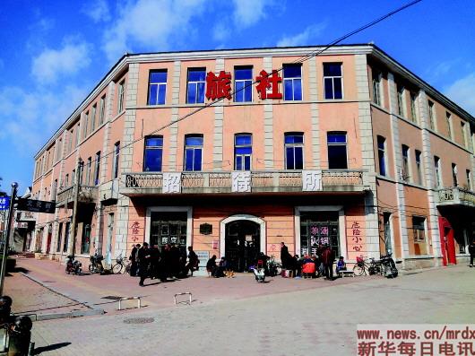 向大和旅馆旧址慢慢走近,就会看到这座历史建筑的四周已经用铁栅栏围住,阳台、墙体出现裂缝,楼门前“危险”两个大字格外醒目。在大和旅馆旧址前面的空地上,卖水果的、摆地摊的、下象棋的、打牌的三五一堆,很难想象这是一座文物保护单位。