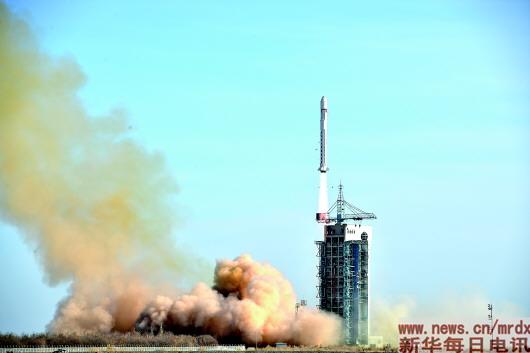 ▲2月2日15时51分,我国在酒泉卫星发射中心用长征二号丁运载火箭成功将电磁监测试验卫星“张衡一号”发射升空,进入预定轨道。
