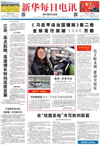 | ( 2018-02-04 ) 稿件来源: 新华每日电讯头版新闻 |