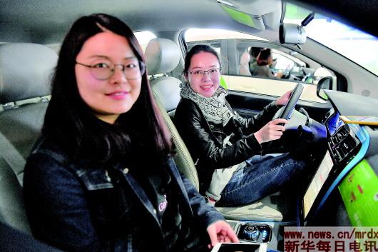 ▲2月3日,来广州游玩的湖南游客文迪(右)、陈星儒在广州南站租用共享汽车后准备去长隆欢乐世界。 |