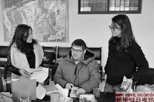 ▲罗宾和西北大学外国语学院的教师们在探讨陕西方言的英译方法。新华社记者姚友明摄
