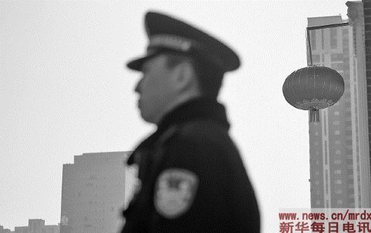 ▲2月1日,沈阳站派出所民警王浚州在沈阳站东广场执勤。新华社发(龙雷摄)