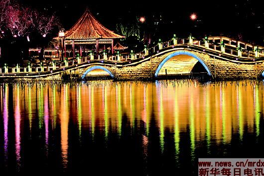 春节前夕,泉城济南对大明湖景区及其周边布置节能照明灯光,勾勒“湖、泉、桥、古建”景观轮廓,打造“明湖夜宴”。