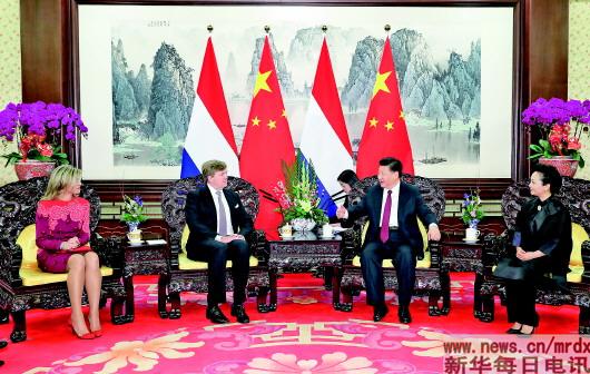 2月7日,国家主席习近平和夫人彭丽媛在北京中南海会见荷兰国王威廉-亚历山大和王后马克西玛。新华社记者丁林摄 |