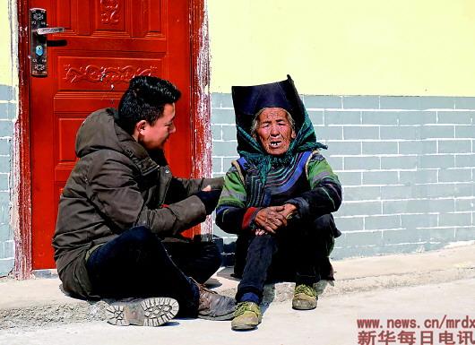 ▲搬进新居的曲木产哈莫老人(右)没想到这辈子能过上这样的好日子,坐在新房前喜极而泣(1月30日摄)。新华社记者肖林摄