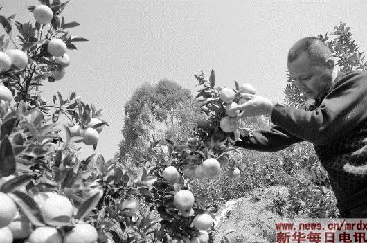 ▲村民郭日建正在自家果园采摘火红的茂谷柑。