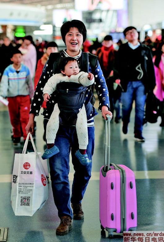 2月6日,旅客陈小林带着女儿在西安咸阳机场乘飞机回广州。在广州工作的陈小林有一双儿女,她将儿子留在西安与奶奶一起过年,自己带女儿回广州与姥姥过年,让两边的老人都能享受天伦之乐。