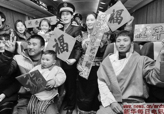 近日,在上海至拉萨Z164次列车上,乘务员与旅客开展了“迎新春、送福字、把吉祥美好带回家”活动,营造暖心的旅程。