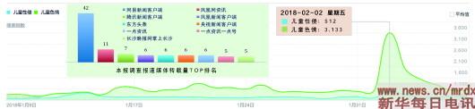 新浪微舆情大数据平台统计结果显示,今年1月13日至2月6日,与儿童色情猥亵性侵现象相关的全网声量,已出现两个明显的高峰。一个是1月13日晚,微博博主“黑客凯文”向警方举报,有人以招募童装模特为由猥亵儿童;另一个是1月24日,有媒体报道“11岁女童遭小学工作人员性侵”的新闻。