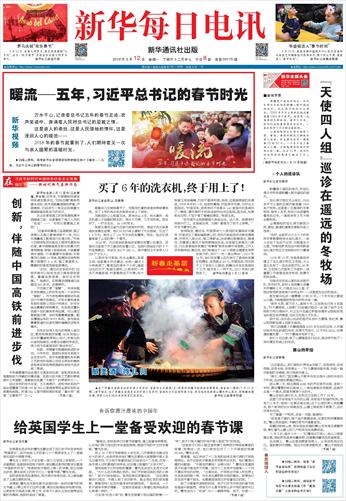 | ( 2018-02-12 ) 稿件来源: 新华每日电讯头版新闻 |